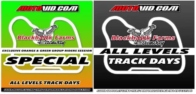 The Motovid.com All Levels Track Day program @ Blackhawk Farms Raceway offers four (4) levels based on experience; Blue (Advance), Green (Intermediate1) Orange (Intermediate2) and Yellow (Novice). Each group runs on the hour with assigned CRs to provide the most conducive track environment allowing for participation by riders of all skill levels. All Levels Track […] |