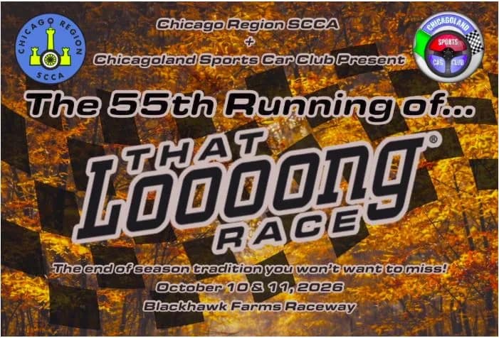 Blackhawk Farms Raceway 15538 Prairie Road, South Beloit, IllinoisThat Loooong Race #55 with the Chicago Region SCCA Club Race organized by Chicagoland Sports Car Club Sat, Oct 10 - Sun, Oct 11, 2026 That Loooong Race #55 with the Chicago […]